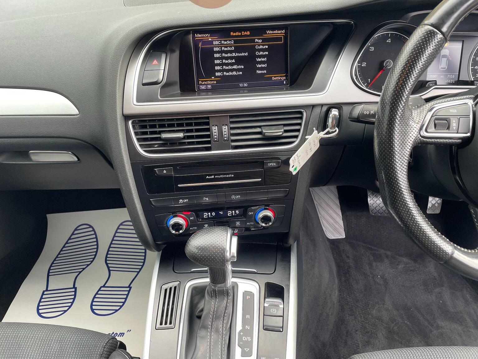 12V Power Socket, 12V Power Socket - Luggage Compartment, 18in Alloy Wheels - 5-Twin Spoke Design, 6.5in Display Screen, ABS - Anti-Lock Braking System, Acoustic Windscreen, Airbags - Driver, Airbags - Front Passenger, Airbags - Front Side, Airbags - Head System, Alarm - Thatcham Category 1, Audi Sound System, Auto-Dimming Rear-View Mirror, Automatic Wipers with Rain Sensor, Bumpers - Front and Rear - S Line Design, Car Jack, Climate Control - Electronic 3-Zone, Cloth Headlining in Black, Colour Drivers Information System - DIS, Concert Radio - MP3/CD Player, Cruise Control, DAB Digital Radio, Door Mirrors - Electrically Adjustable and Heated, Door Sill Trims with S Line Logo, ESP - Electronic Stability Programme, Electric Windows - Front and Rear, Electrically Adjustable 4-Way Lumbar Support, Electromechanical Parking Brake, Electromechanical Power Steering, Exterior Aluminium Package, First Aid Kit, Front Centre Armrest, Front Fog Lights, Front Passenger Airbag Deactivation Switch, Front and Rear Floor Mats, Gear Knob - Perforated Leather, Headlights - Bi-Xenon Plus, Headlights - Coming-Leaving Home Function, Headlights - Light Sensor, Headlights Washers, ISOFIX Child Seat Preparation Front and Rear, Inlays - Matt Brushed Aluminium, Interior Chrome Package, LED Daytime Running Lights, LED Tail Lights, Mobile Telephone Preparation - Bluetooth Interface, Power Operated Tailgate, Radiator Grille - Single Frame - with High Gloss Black Horizontal Bars, Rear Armrest, Rear Parking Sensors, Remote Central Locking, Rest Recommendation System, Roof Rails in Bright Finish, S Line Badges on Wings, S Line Side Skirts, Side Radiator Grilles in Black Honeycomb Structure, Space Saver Spare Wheel, Split-Folding Rear Seats, Spoiler - Roof, Sport Suspension, Steering Wheel - 3-Spoke Leather-Multi-Function-Shift Paddles, Steering Wheel - Height and Reach Adjustable, Steering Wheel - Multi-function, Styling Package - S line Exterior, Tool Kit, Warning Triangle